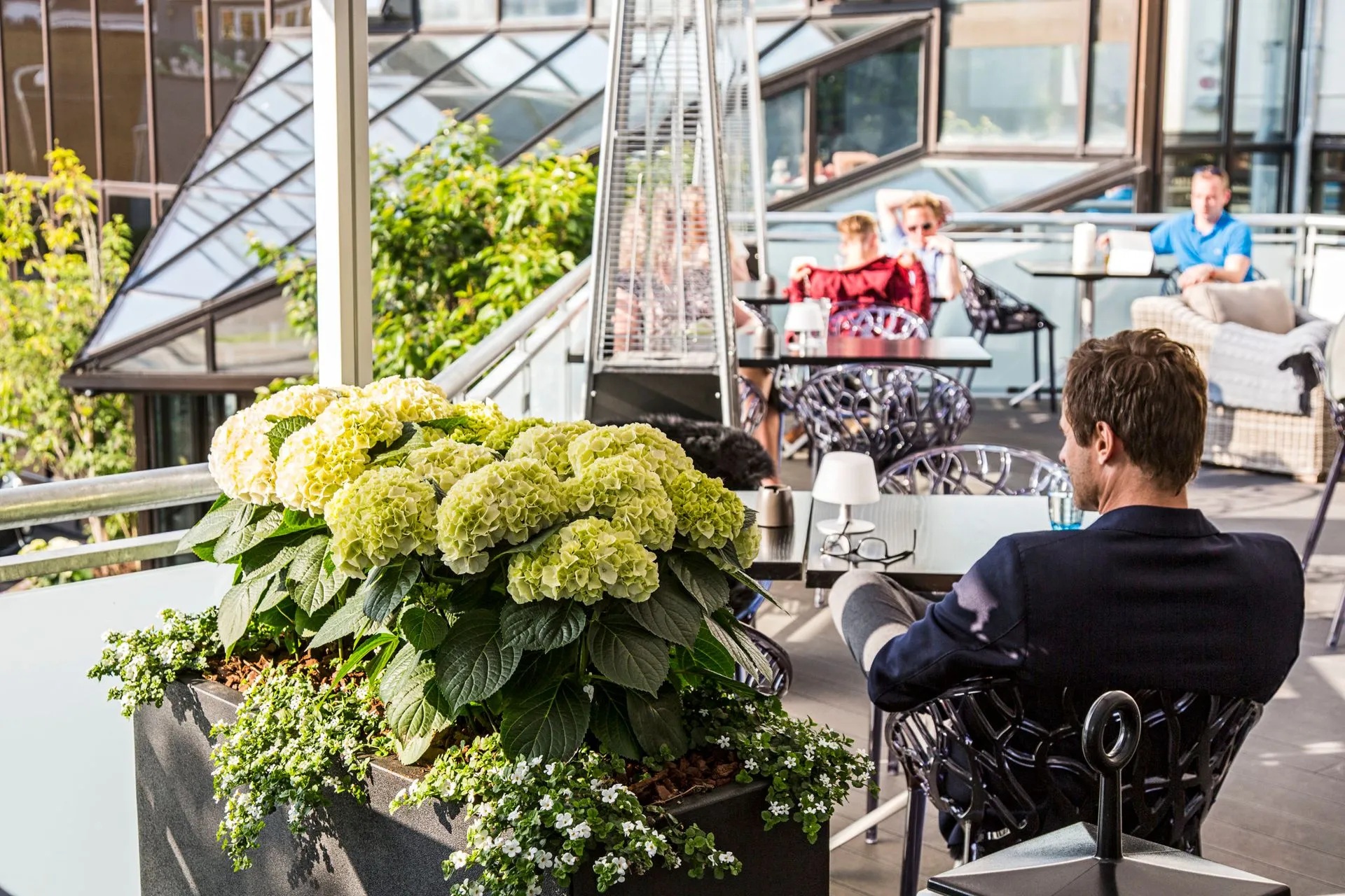 Sist men ikke minst kan du i sommerperioden spise på den 150 m2 store terrassen eller nyte en leskende drink eller øl i kveldssolen. Terrassen har en stor markise, som kan lukke terrassen, og det er flere terrassevarmere, tepper og lammeskinn som kan holde deg varm på en kjølig kveld.